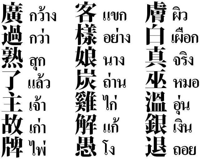 タイ語は中国語を語源とする言葉が多く、クイティアオ(ก๋วยเตี๋ยว)やバミー(บะหมี่)などのように移民によって持ち込まれた比較的新しい単語だけでなく、上古中国語(Old Chinese)や中古中国語(Middle Chinese)といった古い時代にタイ語に取り入れられ既に借用語と意識されることなく使われている言葉も非常に多いのが特徴です。